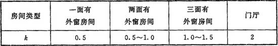 b——門(mén)窗縫隙滲風(fēng)指數,b=0.56~0.78,當無(wú)實(shí)測數據時(shí),可取b=0.67。