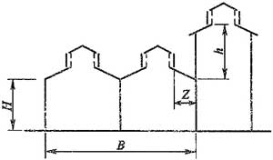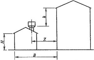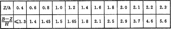 注:當Z/h>2.3時(shí),建筑物的相關(guān)尺寸可不受限制。